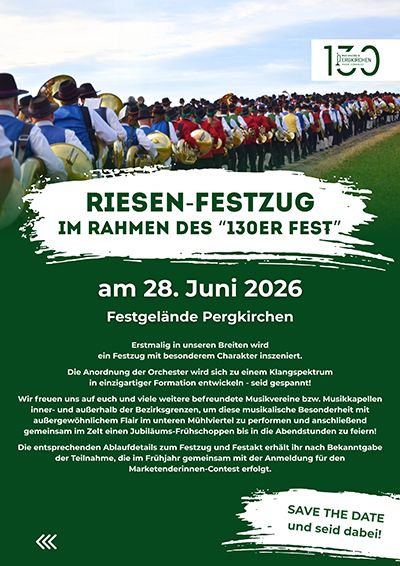 Der Musikverein Pergkirchen wird 130 Jahre alt und feiert dies mit einem 2 tägigen Jubiläumsfest.