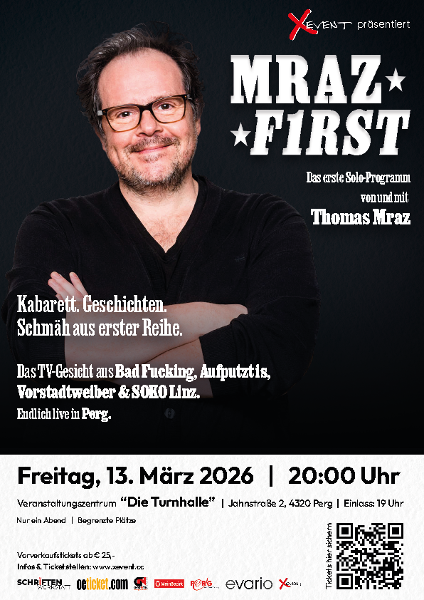 Fr13Mär20:0023:00Kabarett mit Thomas Mraz20:00 - 23:00 VeranstalterX-Event4320 Perg